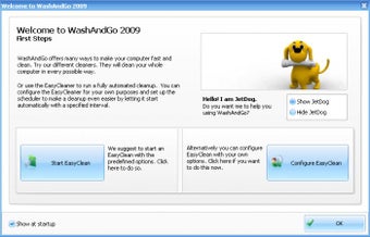 Accompagné de Jet le chien, la mascotte qui vous file un coup de main, WashAndGo lave plus blanc que blanc dans votre corbeille, efface vos fichiers temporaires inutiles, vos logs, passe un coup de balai dans le registre, jette les liens morts et bien d'autres choses encore. Les jauges de niveau indiquent le niveau de propreté de chaque partie de votre PC.